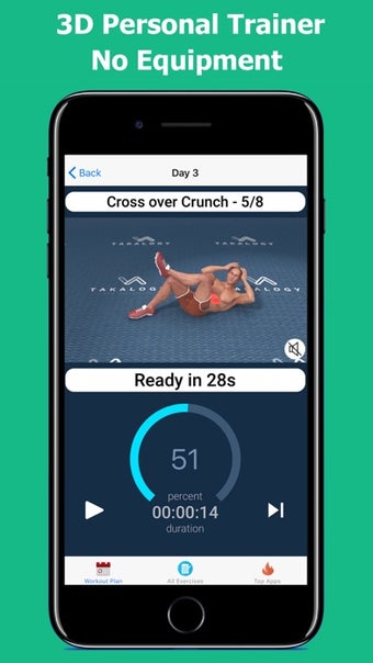 ستة باك في 30 يومًا هو تطبيق مجاني لأجهزة الآيفون مصمم لمساعدة المستخدمين على تحقيق أهدافهم الرياضية من خلال تقديم أسرار فقدان الوزن وتمارين للحصول على عضلات البطن المشدودة. يقدم التطبيق مجموعة متنوعة من برامج التمارين، بما في ذلك تمارين للمنزل والمكتب والكيك بوكسينغ، والتي تنقسم حسب مجموعة العضلات ومستوى الصعوبة. تم تصميم جميع التمارين باستخدام نمذجة ثلاثية الأبعاد وتأتي مع فيديوهات عالية الجودة، وتعليمات على الشاشة، ومؤقت لتتبع التقدم. يتم تطوير التطبيق من قبل مدرب شخصي معتمد ومتكامل مع HealthKit، مما يتيح للمستخدمين مزامنة السعرات الحرارية المحروقة مع Apple Health.